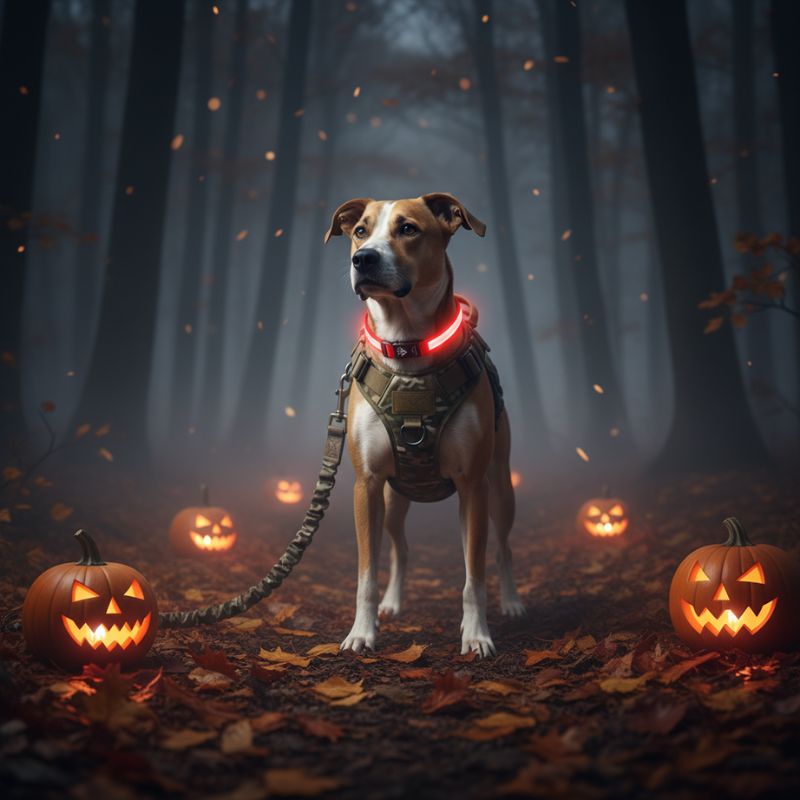 - The Halloween Safety Kit combines 360° LED visibility, an escape-proof tactical harness, and a calming toy to keep your pup safe, secure, and relaxed. Walk through the night with confidence — your dog’s safety, made visible.