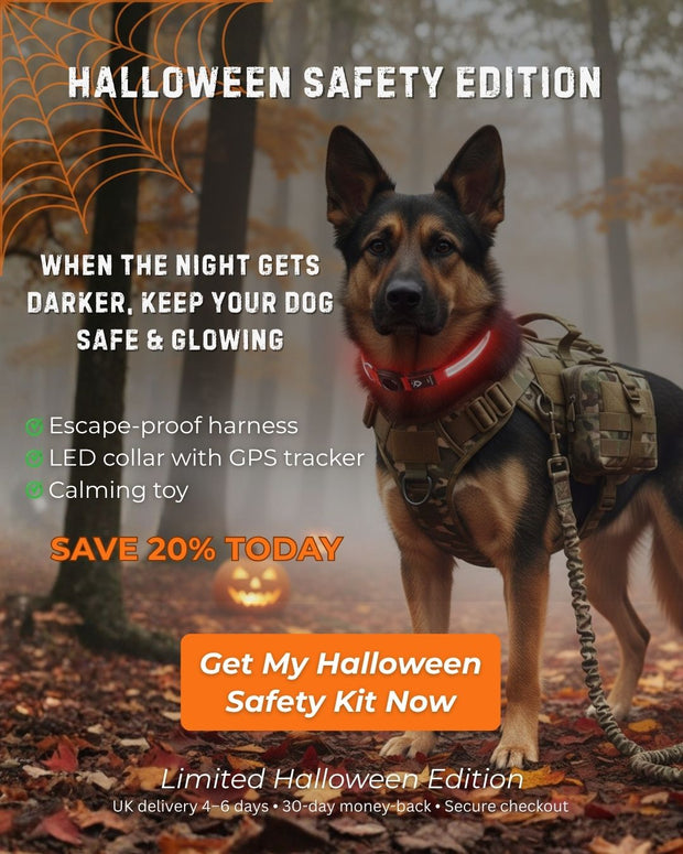 - Halloween nights bring more than costumes — darker evenings, flashing lights, excited children, and unpredictable noise. For dogs, that means confusion and risk. This season, visibility and calmness aren’t optional — they’re safety essentials.